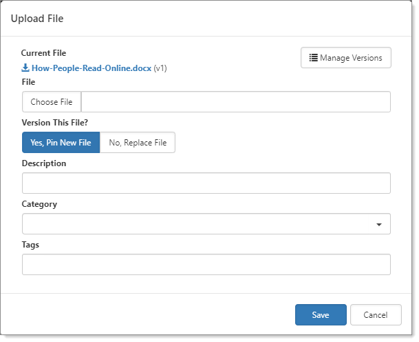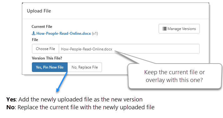 Yes, Pin New File: Default setting. Retains all file versions and pins the most recent uploaded file.
