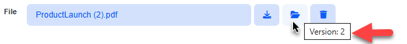 The version number of the file displayed in the field (i.e., the primary, currently pinned file attachment) is displayed as a tooltip.