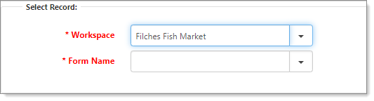 In Form Name, select a dataform. When you select a dataform, the Record field becomes available. Form Name lists forms that are available to the selected Workspace. |