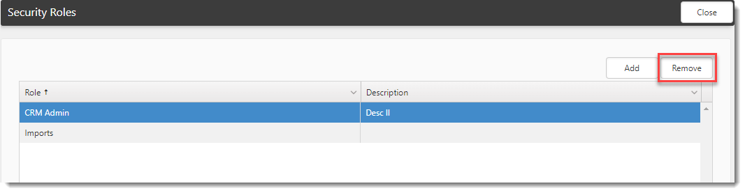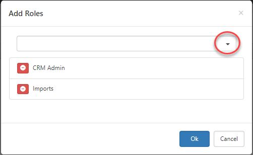 Click the down arrow to select one or more roles and then click OK to add the roles to the Security Roles window.