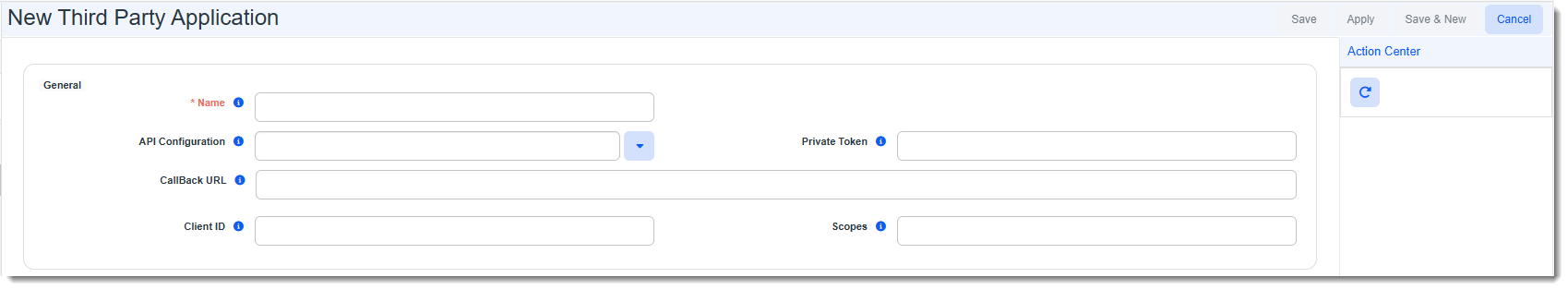 The New Third Party Application form opens.