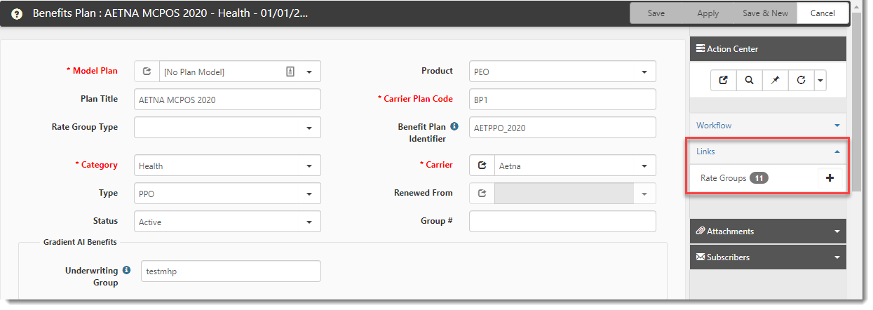 Benefit Plan, Rate Group, Effective Date, and Benefit Group.