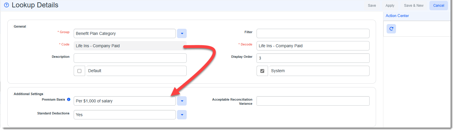 The following default Premium Basis lookup values have been set for each Benefit Plan category listed below. Note that you can overwrite the default settings and assign a Premium Basis. Steps are provided in the next section.