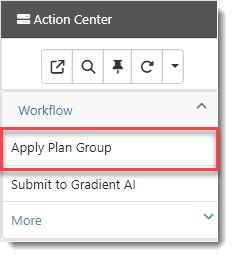 The Apply Plan Group function can only be used on plans in "New", "Pending Activation" or "Activated" status.