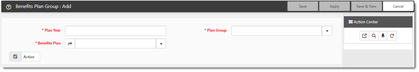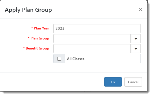 Plan Group Select Plan Group containing the plans you want to apply to the Benefits Batch.