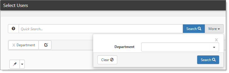 The Select Users dashboard opens. From here you can select users from the list, search using Quick Search or More search.