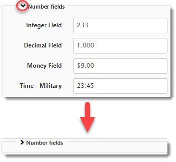 Allows you to control whether fields within a field set are visible or collapsed within the field set container when the form loads. Note: