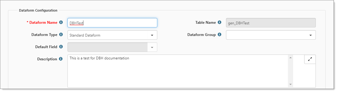 | • | Fields: This is where you add and configure fields for this dataform (see Adding Dataform Fields). |