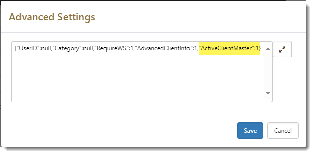 Typeahead field that performs auto-complete foreign key to Organization record. Note: You can filter organizations by the Category field when configuring this datatype. You filter for organizations with an active Client Master by using the ActiveClientMaster filter on this datatype. This is done from Advanced Settings on the field properties. Access the Advanced Settings by going to System Admin Note: When configuring Advanced Settings, be careful of syntax: