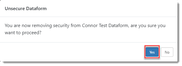 | • | To remove security from the dataform: Click red lock |