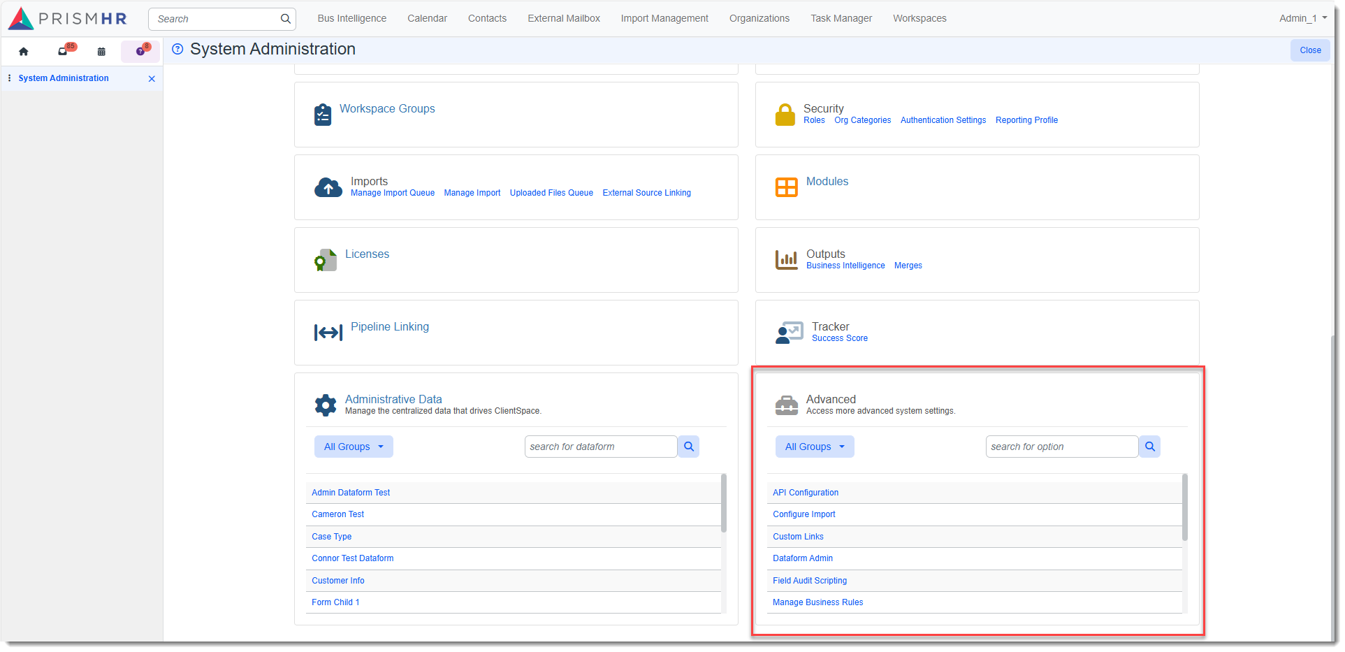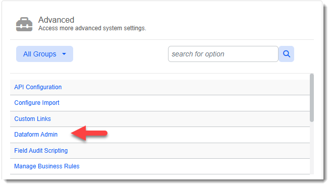In the Advanced section of the System Administration dashboard, click Dataform Admin.