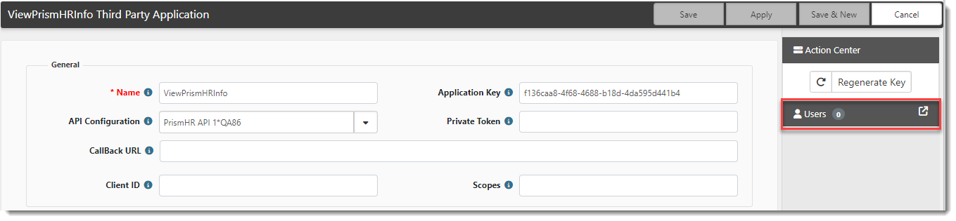 Adding a Third-Party Application (TPA) Record for the "View PrismHR Info" Feature