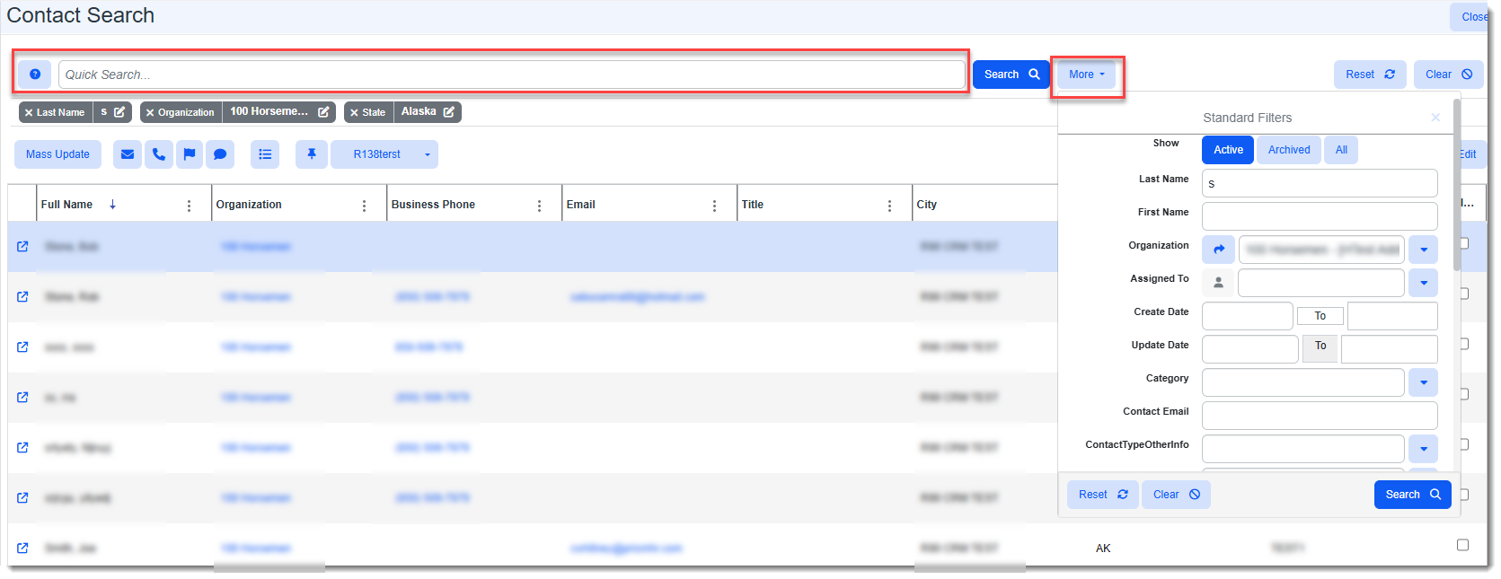 On the Contact Search dashboard perform a Quick Search or click More to perform an advanced search.