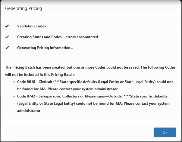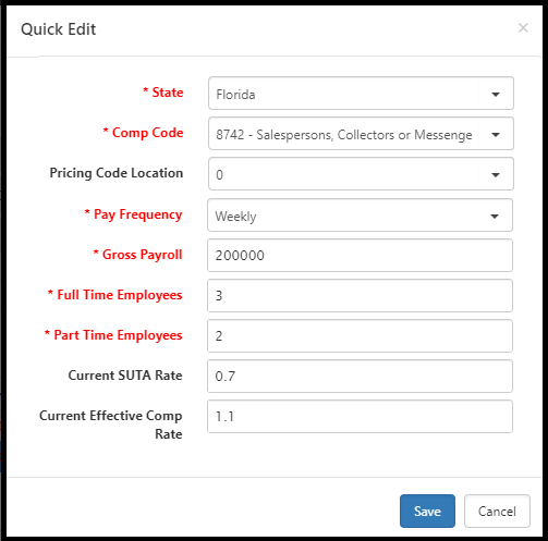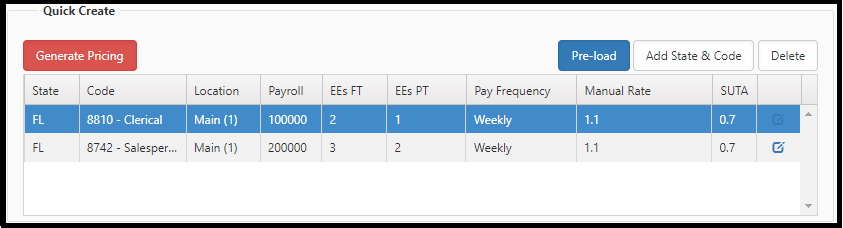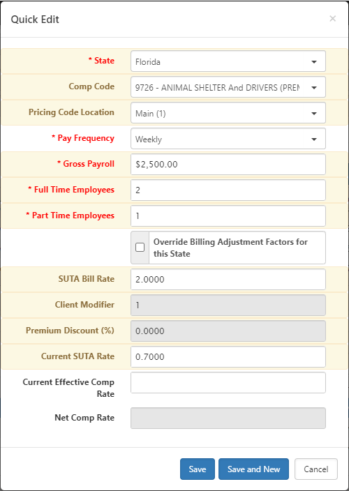 This field indicates the net comp rate. Note: Users can add multiple versions of the same State/Code combination both before and after pricing is generated.