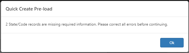 Note: If any of the records are missing required information, the system displays a message to indicate the problem.