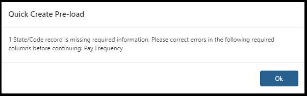 For data that is missing or invalid, the pre-load process displays an informative message that requires action when returning to the grid.