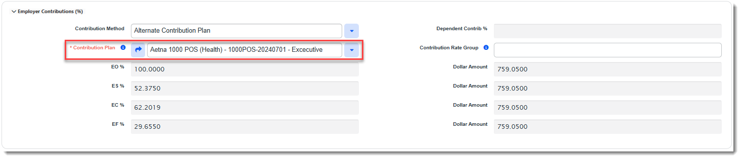 Added Support for New "Alternate Contribution Plan" Contribution Method in BPM Support for the new Alternate Contribution Plan Employer Contribution Method has been added to BPM. When this option is selected for a plan in ClientSpace, all of the Employer Contrib% and Employer Contrib Coverage Level (i.e., Tier) percentage fields and dollar amounts are also updated in BPM on the Group Summary > Summary tab and flagged as "read only". See related Case# 73552 for additional details. |