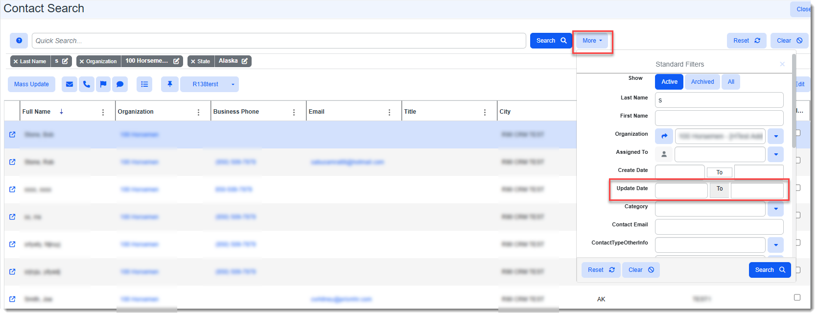 Added Date Parameters to GET /api/contact/v3.0/search Method of ClientSpace API and to Contact Search Dashboard The following query date parameters have been added to the GET /api/contact/v3.0/search method parameters to allow searching contacts for a specified date range: