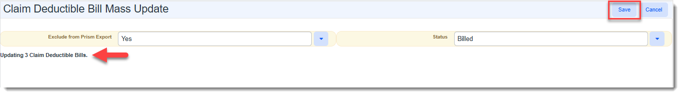 Use the Claim Deductible dashboard Mass Update function allows you to select multiple Claim Deductible Billing records and update the Exclude from Prism Export and/or Status fields all at the same time.