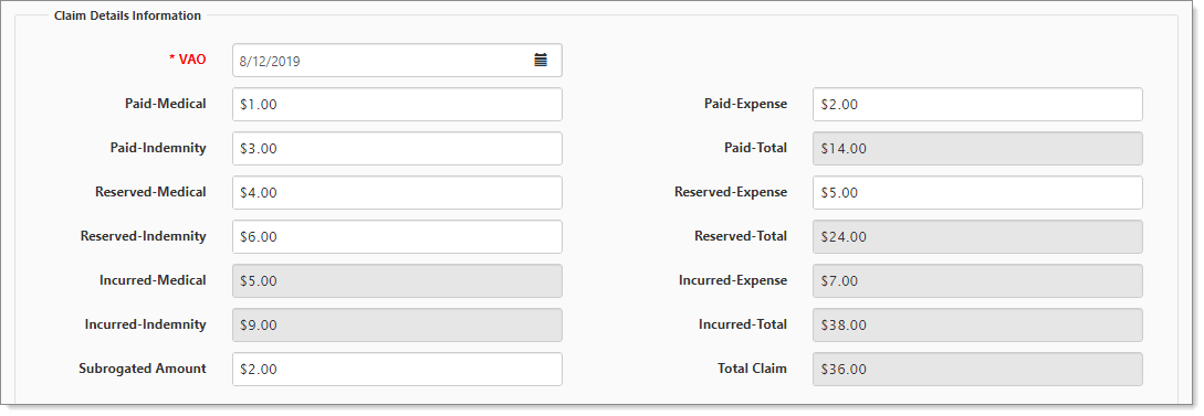 Value As Of (VAO) date. For duplicate VAO dates (multiple records related to the same claim), the stored procedure peo_claimfinancialdetails_s_bykey updates the appropriate financial record by date created (create date descending, to present the most recent create date first). |