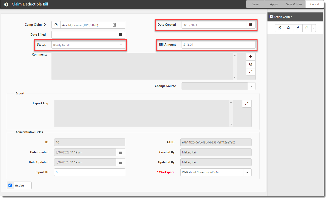 If the amount is not zero, a new Claim Deductible Bill record is created in a Status of Ready to Bill with the Bill Amount field populated and a Date Created of the current date.