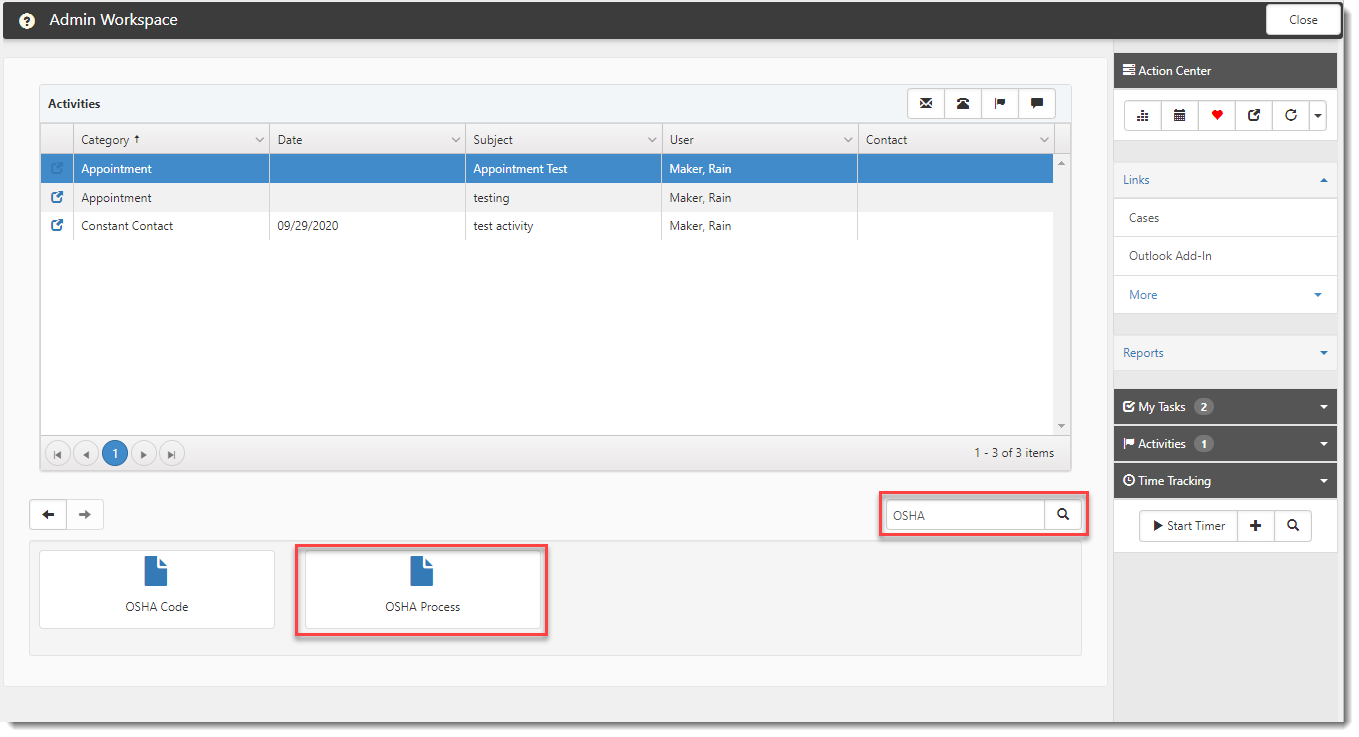 Step 2: Add the OSHA Process Record to the Admin Workspace