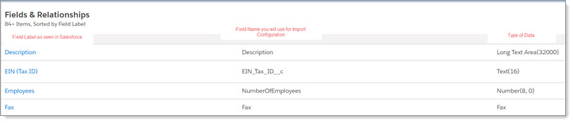 | • | Field Name (the actual name of the field in the Salesforce database table) |