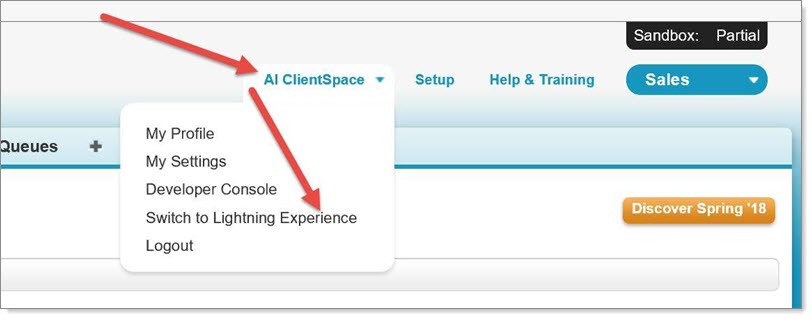 | 1. | Select your username > Switch to Lightning Experience. |