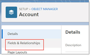 | 5. | When the object opens, select Fields & Relationships to get the Field data you will use in your ClientSpace mappings. |