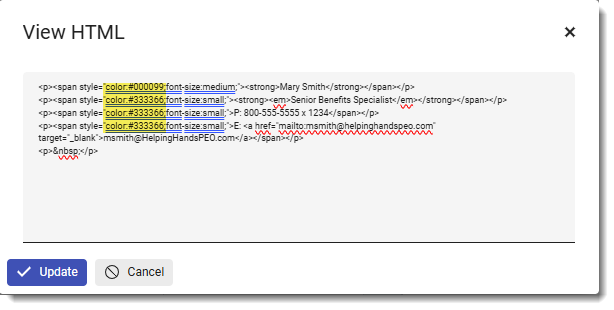 Note: You can use the View HTML option to make other changes and apply other custom effects that are not available on the toolbar.