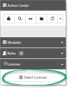 | 3. | In the Action Center, select Licenses > Select Licenses. |