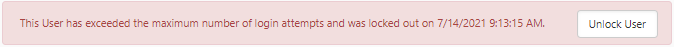 If a user unsuccessfully logs into the system and exceeds the maximum number of login attempts (see Configuring your ClientSpace authentication settings), and the user needs to unlock their account before the system Lockout Duration timing expires, a Global Admin user can unlock the user.