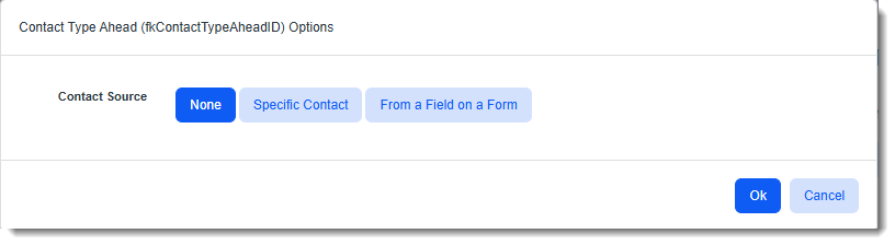Note: Contact datatypes, (i.e., any field with a datatype / dataform field Element Type of Org Contact, Contact, or Contact Typeahead) must be configured in the Dataform Admin field properties as Cloneable and the Triggered Form dataform properties must have the Enable WFC Cloning field enabled (i.e., the dataform must be configured as a clone-configurable dataform.) . To set a contact value: