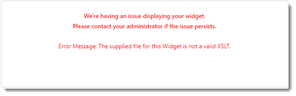 Note: Error handling is built into the Query widget. If there is an issue with the widget settings that prevents the widget from rendering, the error details are displayed in the widget frame as shown in the example image below: