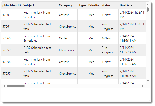 Note: The stored procedures used to populate the list are in the Stored Procedure Register and have a type of Query Widget.